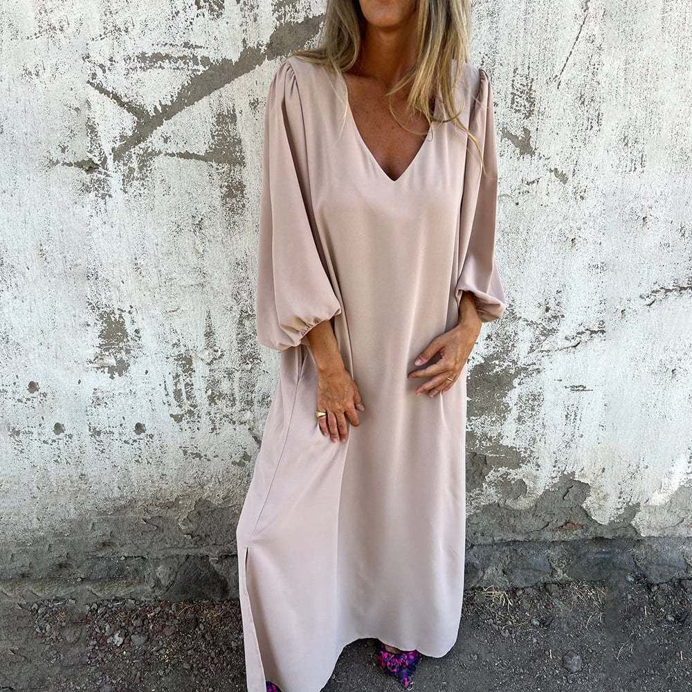 🔥Hot Sale 50% OFF🔥V-neck Solid Color Lantern Sleeve Dress