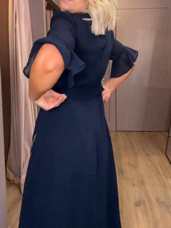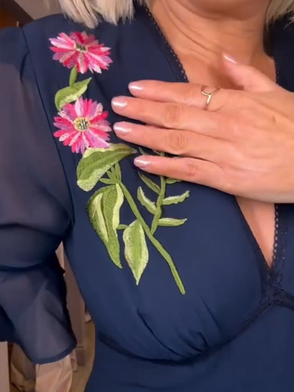 Timeless Elegance: V Neck Floral Embroidered Ruffle Dress