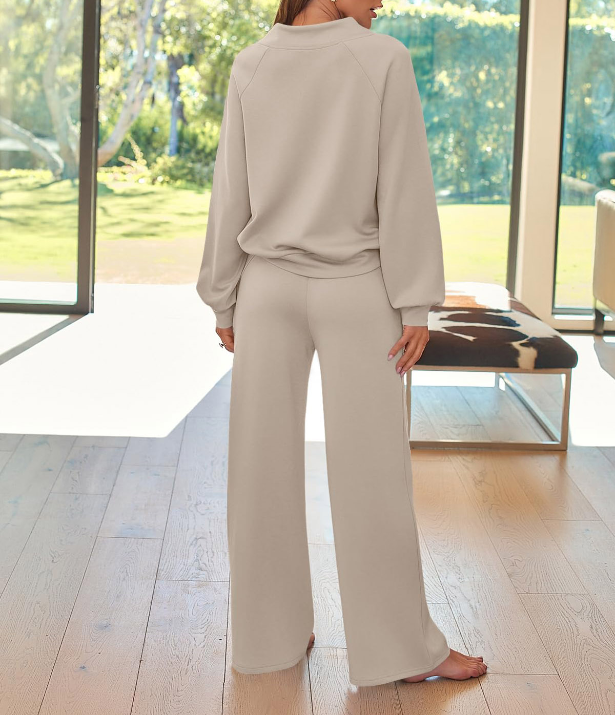 🎄Christmas Clearance 🔥 Women's Oversized Two-Piece Round Neck Drawstring Sweatshirt Wide Leg Sweatpants Casual Suit