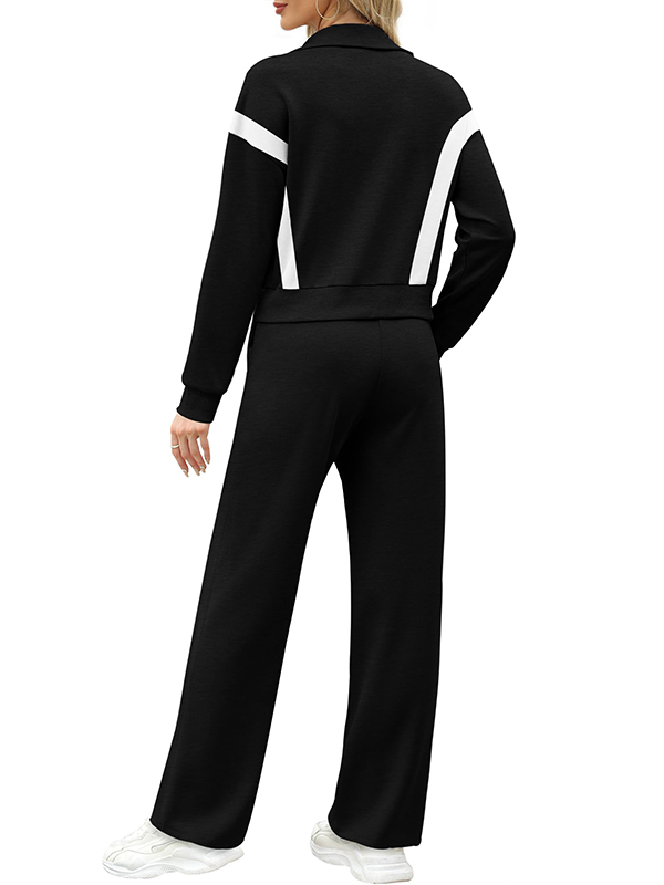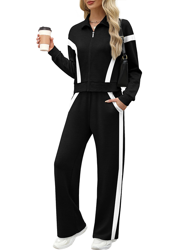 NEW 🔥 Women's Cotton Two-Piece Pinstripe Outfits Sweatshirt Wide Leg Sweatpants Casual Set